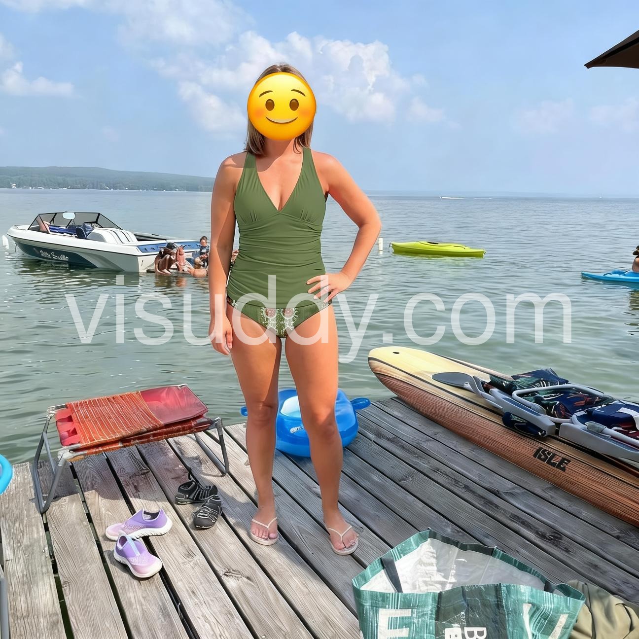 I have a few different swimsuits, and this one is so pretty. It’s super flattering. As a mom of two gentle giants, I appreciate the belly coverage, it fits to size, very stretchy in all the right places, and I have worn it all summer and it’s still like brand new even after multiple washes. I do not regret buying this, not at all.