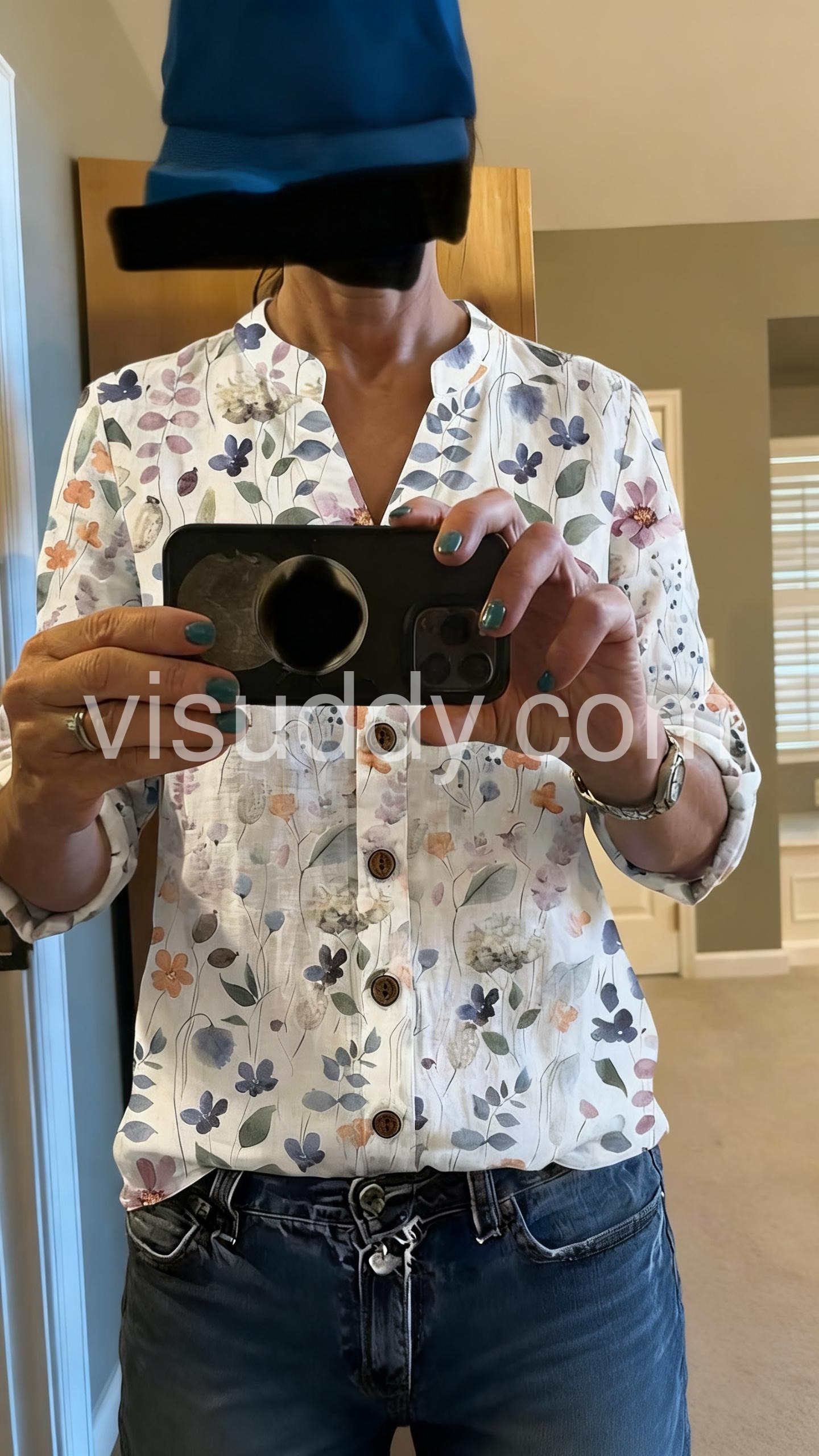 Elegant Watercolor Floral Button Up Blouse
