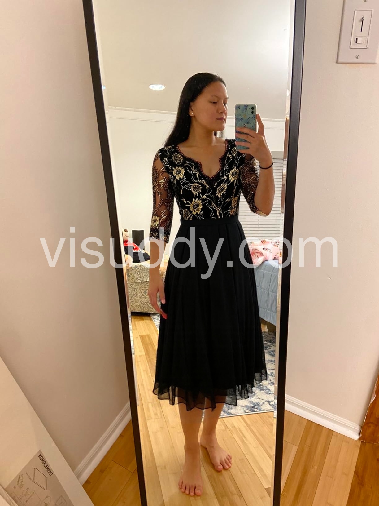 This stylish midi dress features a flattering V-neck design and elegant 3/4 sleeves, making it perfect for any occasion. With its versatile and timeless style, it offers a comfortable and chic look that can be dressed up or down. Made from high-quality materials, this dress is a must-have for any fashion-forward wardrobe.